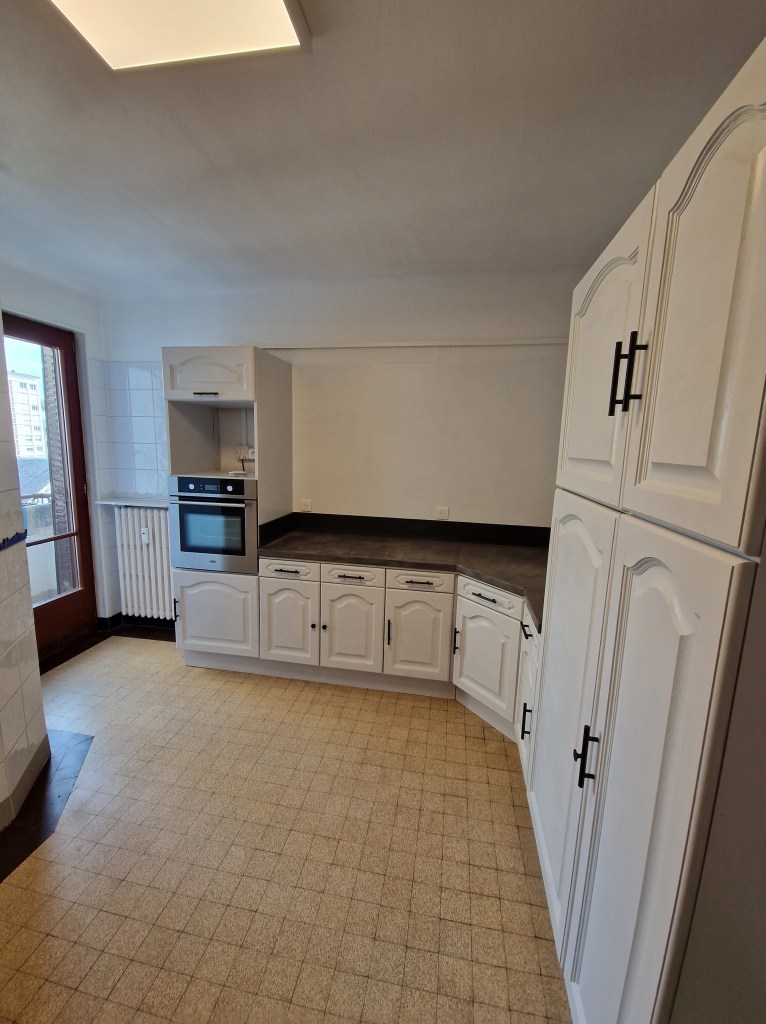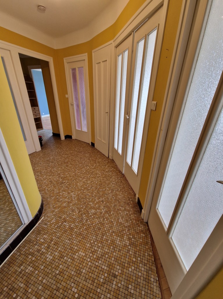 Il s’agit d’un trois pièces de 74 m². Il est composé d’un hall d’entrée avec placard, d’un très beau séjour donnant sur un balcon, d’une cuisine équipée d’un four, plaque, hotte et frigo et bénéficiant d’un second balcon, de deux chambres, d’une salle de bain, et d’un WC séparé. Il est en bon état général.